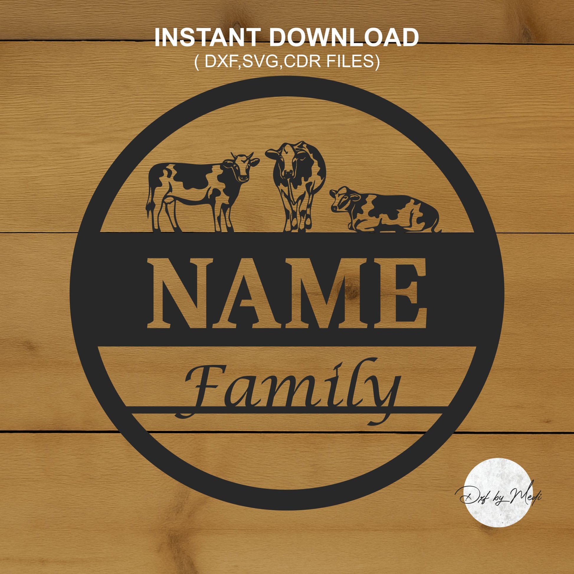 Personalized Farm Sign with Cow Design | Custom Name DXF SVG Files for CNC & Laser Cutting | Rustic Farmhouse Decor | Instant Download