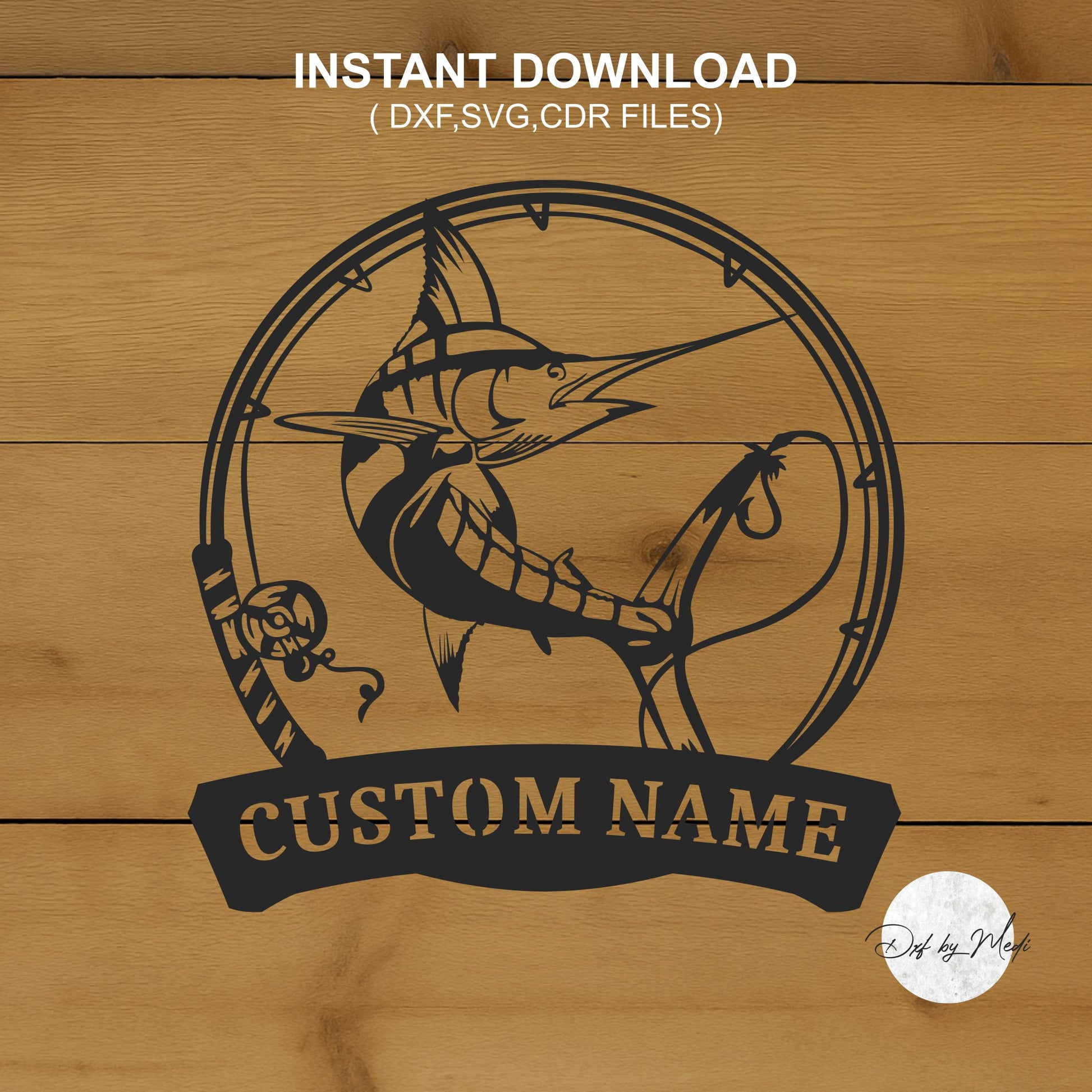 Personalized Fishing marline Fish Sign - Customizable DXF SVG files for Plasma Cnc Laser Waterjet Ready to cut- dxf File for DIY Projects